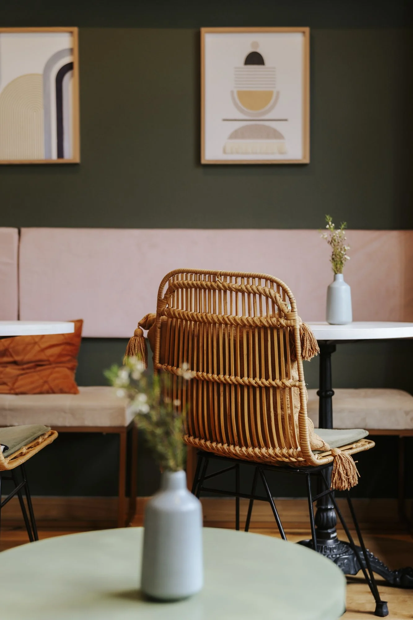 Wenn Yogastunden oder Kurse stattfinden, verwandelt sich der Raum in einen Ort der Ruhe und Achtsamkeit. Währenddessen bleibt das Café geschlossen, um eine ungestörte Praxis zu ermöglichen. Vor den Kursen lädt der Space jedoch zum entspannten Ankommen ein – mit einer Tasse Tee, Zeit zum Umziehen oder einem Moment des Innehaltens.